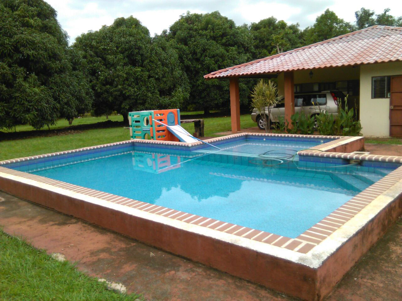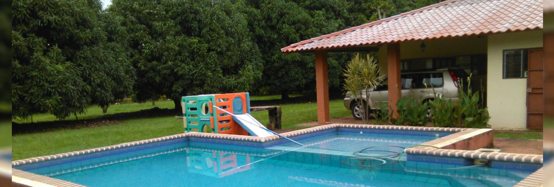La residencia fue construida en el año 2007, es de 1 planta y tiene una piscina para compañar el clima de Orotina. Su finca de 7200 m2 tiene bellas áreas verdes y variedad de árboles frutales.